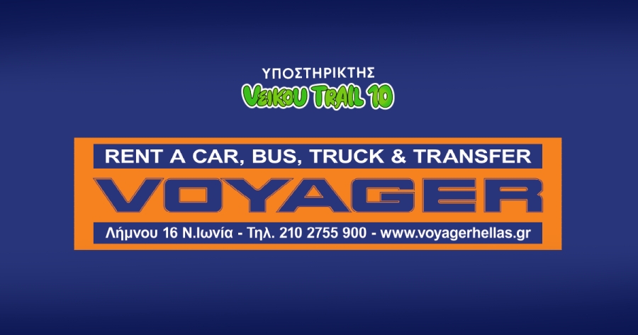 Ανταποκρινόμενη σε αυτές τις ανάγκες, η Οργανωτική Επιτροπή του Veikou Trail ένωσε τις δυνάμεις της με την VOYAGER – RENT A CAR & VAN, η οποία στηρίζει τη διοργάνωση παρέχοντας αξιόπιστα, σύγχρονα και άριστα συντηρημένα οχήματα, συμβάλλοντας ουσιαστικά στην ομαλή και επιτυχημένη διεξαγωγή της.
